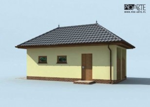 Budynek gospodarczy, wolnostojący. Projekt budynku składa się z 6 egzemplarzy, a w tym części architektoniczno-budowlanejj oraz 3 technicznej. W projekcie załączone są podstawowe zestawienie stali, drewna i stolarki okienno-drzwiowej. Do projektu dołączamy bezpłatną zgodę na wprowadzenie zmian, oświadczenie projektantów o wykonaniu projektu zgodnie z obowiązującymi normami i przepisami oraz kserokopie uprawnień projektantów wraz z aktualnym wpisem do izby.  W przypadku zamówienia projektu w technologii lekkiej, drewnianej konstrukcji szkieletowej, powierzchnia użytkowa budynku jest o około 7% większa.