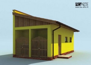 Budynek gospodarczy, wolnostojący. Projekt składa się z części architektonicznej, konstrukcyjnej i wewnętrznej instalacji elektrycznej. W projekcie załączone są podstawowe zestawienie stali, drewna i stolarki okienno-drzwiowej. Do projektu dołączamy bezpłatną zgodę na wprowadzenie zmian, oświadczenie projektantów o wykonaniu projektu zgodnie z obowiązującymi normami i przepisami oraz kserokopie uprawnień projektantów wraz z aktualnym wpisem do izby. W przypadku zamówienia projektu w technologii lekkiej, drewnianej konstrukcji szkieletowej, powierzchnia użytkowa budynku jest o około 7% większa.
