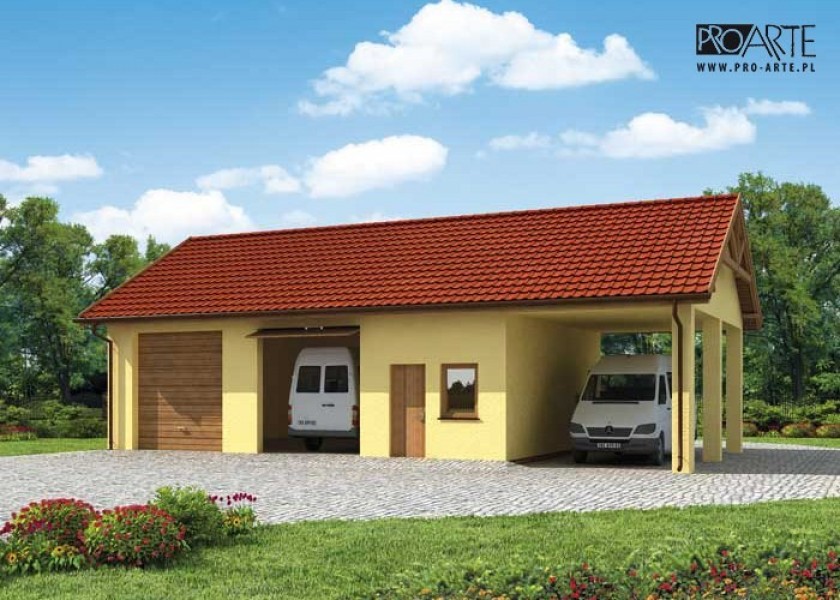 Budynek gospodarczy, wolnostojący. Projekt składa się z części architektonicznej, konstrukcyjnej i wewnętrznej instalacji elektrycznej. W projekcie załączone są podstawowe zestawienie stali, drewna i stolarki okienno-drzwiowej. Do projektu dołączamy bezpłatną zgodę na wprowadzenie zmian, oświadczenie projektantów o wykonaniu projektu zgodnie z obowiązującymi normami i przepisami oraz kserokopie uprawnień projektantów wraz z aktualnym wpisem do izby. W przypadku zamówienia projektu w technologii lekkiej, drewnianej konstrukcji szkieletowej, powierzchnia użytkowa budynku jest o około 7% większa.