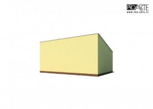 Budynek gospodarczy, wolnostojący. Projekt składa się z części architektonicznej, konstrukcyjnej i wewnętrznej instalacji elektrycznej. W projekcie załączone są podstawowe zestawienie stali, drewna i stolarki okienno-drzwiowej. Do projektu dołączamy bezpłatną zgodę na wprowadzenie zmian, oświadczenie projektantów o wykonaniu projektu zgodnie z obowiązującymi normami i przepisami oraz kserokopie uprawnień projektantów wraz z aktualnym wpisem do izby. W przypadku zamówienia projektu w technologii lekkiej, drewnianej konstrukcji szkieletowej, powierzchnia użytkowa budynku jest o około 7% większa.