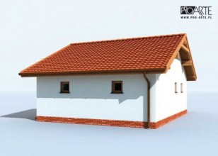 Budynek gospodarczy, wolnostojący. Projekt składa się z części architektonicznej, konstrukcyjnej i wewnętrznej instalacji elektrycznej. W projekcie załączone są podstawowe zestawienie stali, drewna i stolarki okienno-drzwiowej. Do projektu dołączamy bezpłatną zgodę na wprowadzenie zmian, oświadczenie projektantów o wykonaniu projektu zgodnie z obowiązującymi normami i przepisami oraz kserokopie uprawnień projektantów wraz z aktualnym wpisem do izby. W przypadku zamówienia projektu w technologii lekkiej, drewnianej konstrukcji szkieletowej, powierzchnia użytkowa budynku jest o około 7% większa.