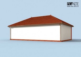 Budynek gospodarczy, wolnostojący. Projekt składa się z części architektonicznej, konstrukcyjnej i wewnętrznej instalacji elektrycznej. W projekcie załączone są podstawowe zestawienie stali, drewna i stolarki okienno-drzwiowej. Do projektu dołączamy bezpłatną zgodę na wprowadzenie zmian, oświadczenie projektantów o wykonaniu projektu zgodnie z obowiązującymi normami i przepisami oraz kserokopie uprawnień projektantów wraz z aktualnym wpisem do izby. W przypadku zamówienia projektu w technologii lekkiej, drewnianej konstrukcji szkieletowej, powierzchnia użytkowa budynku jest o około 7% większa.