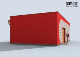Budynek gospodarczy, wolnostojący. Projekt składa się z części architektonicznej, konstrukcyjnej i wewnętrznej instalacji elektrycznej. W projekcie załączone są podstawowe zestawienie stali, drewna i stolarki okienno-drzwiowej. Do projektu dołączamy bezpłatną zgodę na wprowadzenie zmian, oświadczenie projektantów o wykonaniu projektu zgodnie z obowiązującymi normami i przepisami oraz kserokopie uprawnień projektantów wraz z aktualnym wpisem do izby. W przypadku zamówienia projektu w technologii lekkiej, drewnianej konstrukcji szkieletowej, powierzchnia użytkowa budynku jest o około 7% większa.