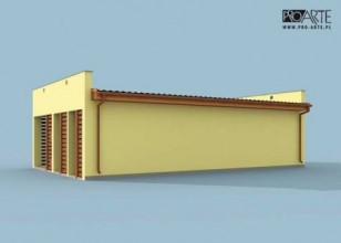 Budynek gospodarczy, wolnostojący. Projekt składa się z części architektonicznej, konstrukcyjnej i wewnętrznej instalacji elektrycznej. W projekcie załączone są podstawowe zestawienie stali, drewna i stolarki okienno-drzwiowej. Do projektu dołączamy bezpłatną zgodę na wprowadzenie zmian, oświadczenie projektantów o wykonaniu projektu zgodnie z obowiązującymi normami i przepisami oraz kserokopie uprawnień projektantów wraz z aktualnym wpisem do izby. W przypadku zamówienia projektu w technologii lekkiej, drewnianej konstrukcji szkieletowej, powierzchnia użytkowa budynku jest o około 7% większa.
