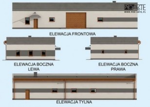 Budynek gospodarczy, wolnostojący. Projekt składa się z części architektonicznej, konstrukcyjnej i wewnętrznej instalacji elektrycznej. W projekcie załączone są podstawowe zestawienie stali, drewna i stolarki okienno-drzwiowej. Do projektu dołączamy bezpłatną zgodę na wprowadzenie zmian, oświadczenie projektantów o wykonaniu projektu zgodnie z obowiązującymi normami i przepisami oraz kserokopie uprawnień projektantów wraz z aktualnym wpisem do izby. W przypadku zamówienia projektu w technologii lekkiej, drewnianej konstrukcji szkieletowej, powierzchnia użytkowa budynku jest o około 7% większa.