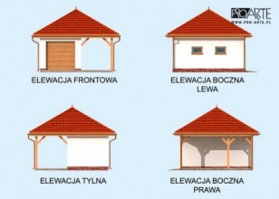 Budynek gospodarczy, wolnostojący. Projekt składa się z części architektonicznej, konstrukcyjnej i wewnętrznej instalacji elektrycznej. W projekcie załączone są podstawowe zestawienie stali, drewna i stolarki okienno-drzwiowej. Do projektu dołączamy bezpłatną zgodę na wprowadzenie zmian, oświadczenie projektantów o wykonaniu projektu zgodnie z obowiązującymi normami i przepisami oraz kserokopie uprawnień projektantów wraz z aktualnym wpisem do izby. W przypadku zamówienia projektu w technologii lekkiej, drewnianej konstrukcji szkieletowej, powierzchnia użytkowa budynku jest o około 7% większa.