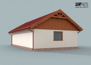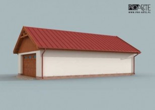 Budynek gospodarczy, wolnostojący. Projekt składa się z części architektonicznej, konstrukcyjnej i wewnętrznej instalacji elektrycznej. W projekcie załączone są podstawowe zestawienie stali, drewna i stolarki okienno-drzwiowej. Do projektu dołączamy bezpłatną zgodę na wprowadzenie zmian, oświadczenie projektantów o wykonaniu projektu zgodnie z obowiązującymi normami i przepisami oraz kserokopie uprawnień projektantów wraz z aktualnym wpisem do izby. W przypadku zamówienia projektu w technologii lekkiej, drewnianej konstrukcji szkieletowej, powierzchnia użytkowa budynku jest o około 7% większa.