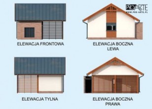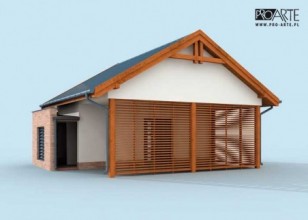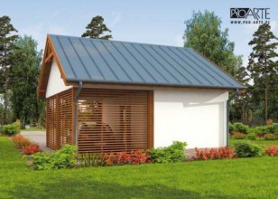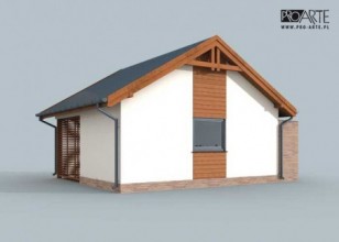 Budynek gospodarczy, wolnostojący. Projekt składa się z części architektonicznej, konstrukcyjnej i wewnętrznej instalacji elektrycznej. W projekcie załączone są podstawowe zestawienie stali, drewna i stolarki okienno-drzwiowej. Do projektu dołączamy bezpłatną zgodę na wprowadzenie zmian, oświadczenie projektantów o wykonaniu projektu zgodnie z obowiązującymi normami i przepisami oraz kserokopie uprawnień projektantów wraz z aktualnym wpisem do izby. W przypadku zamówienia projektu w technologii lekkiej, drewnianej konstrukcji szkieletowej, powierzchnia użytkowa budynku jest o około 7% większa.