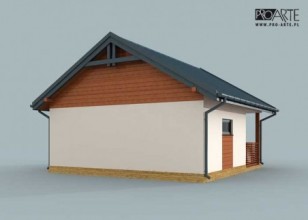 Budynek gospodarczy, wolnostojący. Projekt składa się z części architektonicznej, konstrukcyjnej i wewnętrznej instalacji elektrycznej. W projekcie załączone są podstawowe zestawienie stali, drewna i stolarki okienno-drzwiowej. Do projektu dołączamy bezpłatną zgodę na wprowadzenie zmian, oświadczenie projektantów o wykonaniu projektu zgodnie z obowiązującymi normami i przepisami oraz kserokopie uprawnień projektantów wraz z aktualnym wpisem do izby. W przypadku zamówienia projektu w technologii lekkiej, drewnianej konstrukcji szkieletowej, powierzchnia użytkowa budynku jest o około 7% większa.