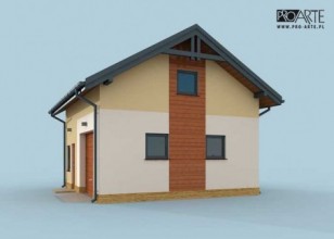 Budynek gospodarczy, wolnostojący. Projekt składa się z części architektonicznej, konstrukcyjnej i wewnętrznej instalacji elektrycznej. W projekcie załączone są podstawowe zestawienie stali, drewna i stolarki okienno-drzwiowej. Do projektu dołączamy bezpłatną zgodę na wprowadzenie zmian, oświadczenie projektantów o wykonaniu projektu zgodnie z obowiązującymi normami i przepisami oraz kserokopie uprawnień projektantów wraz z aktualnym wpisem do izby. W przypadku zamówienia projektu w technologii lekkiej, drewnianej konstrukcji szkieletowej, powierzchnia użytkowa budynku jest o około 7% większa.