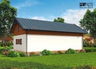 Budynek gospodarczy, wolnostojący. Projekt składa się z części architektonicznej, konstrukcyjnej i wewnętrznej instalacji elektrycznej. W projekcie załączone są podstawowe zestawienie stali, drewna i stolarki okienno-drzwiowej. Do projektu dołączamy bezpłatną zgodę na wprowadzenie zmian, oświadczenie projektantów o wykonaniu projektu zgodnie z obowiązującymi normami i przepisami oraz kserokopie uprawnień projektantów wraz z aktualnym wpisem do izby. W przypadku zamówienia projektu w technologii lekkiej, drewnianej konstrukcji szkieletowej, powierzchnia użytkowa budynku jest o około 7% większa.