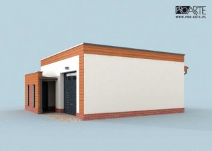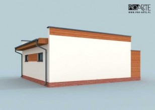 Budynek gospodarczy, wolnostojący. Projekt składa się z części architektonicznej, konstrukcyjnej i wewnętrznej instalacji elektrycznej. W projekcie załączone są podstawowe zestawienie stali, drewna i stolarki okienno-drzwiowej. Do projektu dołączamy bezpłatną zgodę na wprowadzenie zmian, oświadczenie projektantów o wykonaniu projektu zgodnie z obowiązującymi normami i przepisami oraz kserokopie uprawnień projektantów wraz z aktualnym wpisem do izby. W przypadku zamówienia projektu w technologii lekkiej, drewnianej konstrukcji szkieletowej, powierzchnia użytkowa budynku jest o około 7% większa.