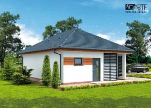 Budynek gospodarczy, wolnostojący. Projekt składa się z części architektonicznej, konstrukcyjnej i wewnętrznej instalacji elektrycznej. W projekcie załączone są podstawowe zestawienie stali, drewna i stolarki okienno-drzwiowej. Do projektu dołączamy bezpłatną zgodę na wprowadzenie zmian, oświadczenie projektantów o wykonaniu projektu zgodnie z obowiązującymi normami i przepisami oraz kserokopie uprawnień projektantów wraz z aktualnym wpisem do izby. W przypadku zamówienia projektu w technologii lekkiej, drewnianej konstrukcji szkieletowej, powierzchnia użytkowa budynku jest o około 7% większa.