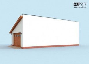Budynek gospodarczy, wolnostojący. Projekt składa się z części architektonicznej, konstrukcyjnej i wewnętrznej instalacji elektrycznej. W projekcie załączone są podstawowe zestawienie stali, drewna i stolarki okienno-drzwiowej. Do projektu dołączamy bezpłatną zgodę na wprowadzenie zmian, oświadczenie projektantów o wykonaniu projektu zgodnie z obowiązującymi normami i przepisami oraz kserokopie uprawnień projektantów wraz z aktualnym wpisem do izby. W przypadku zamówienia projektu w technologii lekkiej, drewnianej konstrukcji szkieletowej, powierzchnia użytkowa budynku jest o około 7% większa.
