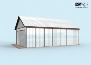 GB24 projekt budynku gospodarczego. Projekt składa się z części architektonicznej, konstrukcyjnej i wewnętrznej instalacji elektrycznej. W projekcie załączone są podstawowe zestawienie stali, drewna i stolarki okienno-drzwiowej. Do projektu dołączamy bezpłatną zgodę na wprowadzenie zmian, oświadczenie projektantów o wykonaniu projektu zgodnie z obowiązującymi normami i przepisami oraz kserokopie uprawnień projektantów wraz z aktualnym wpisem do izby. W przypadku zamówienia projektu w technologii lekkiej, drewnianej konstrukcji szkieletowej, powierzchnia użytkowa budynku jest o około 7% większa.
