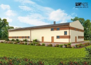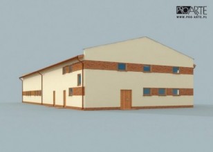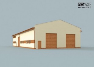 Budynek gospodarczy, wolnostojący. Projekt składa się z części architektonicznej, konstrukcyjnej i wewnętrznej instalacji elektrycznej. W projekcie załączone są podstawowe zestawienie stali, drewna i stolarki okienno-drzwiowej. Do projektu dołączamy bezpłatną zgodę na wprowadzenie zmian, oświadczenie projektantów o wykonaniu projektu zgodnie z obowiązującymi normami i przepisami oraz kserokopie uprawnień projektantów wraz z aktualnym wpisem do izby. W przypadku zamówienia projektu w technologii lekkiej, drewnianej konstrukcji szkieletowej, powierzchnia użytkowa budynku jest o około 7% większa.