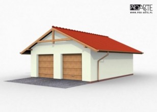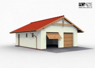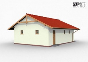 Budynek gospodarczy, wolnostojący. Projekt składa się z części architektonicznej, konstrukcyjnej i wewnętrznej instalacji elektrycznej. W projekcie załączone są podstawowe zestawienie stali, drewna i stolarki okienno-drzwiowej. Do projektu dołączamy bezpłatną zgodę na wprowadzenie zmian, oświadczenie projektantów o wykonaniu projektu zgodnie z obowiązującymi normami i przepisami oraz kserokopie uprawnień projektantów wraz z aktualnym wpisem do izby. W przypadku zamówienia projektu w technologii lekkiej, drewnianej konstrukcji szkieletowej, powierzchnia użytkowa budynku jest o około 7% większa.