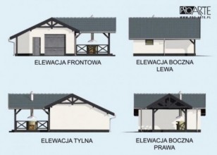 Budynek gospodarczy, wolnostojący. Projekt składa się z części architektonicznej, konstrukcyjnej i wewnętrznej instalacji elektrycznej. W projekcie załączone są podstawowe zestawienie stali, drewna i stolarki okienno-drzwiowej. Projekt budynku składa się z 6 egzemplarzy, a w tym 3 tomów części architektoniczno-budowlanej oraz 3 technicznej. W projekcie załączone są podstawowe zestawienie stali, drewna i stolarki okienno-drzwiowej. Do projektu dołączamy bezpłatną zgodę na wprowadzenie zmian, oświadczenie projektantów o wykonaniu projektu zgodnie z obowiązującymi normami i przepisami oraz kserokopie uprawnień projektantów wraz z aktualnym wpisem do izby. W przypadku zamówienia projektu w technologii lekkiej, drewnianej konstrukcji szkieletowej, powierzchnia użytkowa budynku jest o około 7% większa.