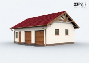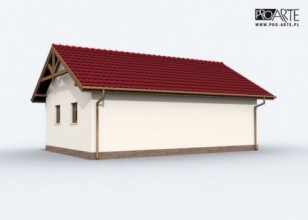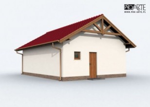 Budynek gospodarczy, wolnostojący. Projekt składa się z części architektonicznej, konstrukcyjnej i wewnętrznej instalacji elektrycznej. W projekcie załączone są podstawowe zestawienie stali, drewna i stolarki okienno-drzwiowej. Do projektu dołączamy bezpłatną zgodę na wprowadzenie zmian, oświadczenie projektantów o wykonaniu projektu zgodnie z obowiązującymi normami i przepisami oraz kserokopie uprawnień projektantów wraz z aktualnym wpisem do izby. W przypadku zamówienia projektu w technologii lekkiej, drewnianej konstrukcji szkieletowej, powierzchnia użytkowa budynku jest o około 7% większa.