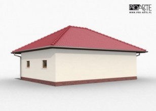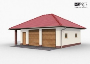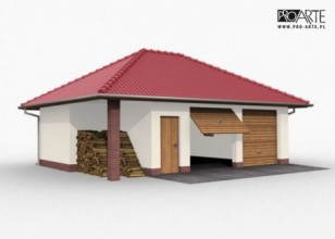 Budynek gospodarczy, wolnostojący. Projekt składa się z części architektonicznej, konstrukcyjnej i wewnętrznej instalacji elektrycznej. W projekcie załączone są podstawowe zestawienie stali, drewna i stolarki okienno-drzwiowej. Do projektu dołączamy bezpłatną zgodę na wprowadzenie zmian, oświadczenie projektantów o wykonaniu projektu zgodnie z obowiązującymi normami i przepisami oraz kserokopie uprawnień projektantów wraz z aktualnym wpisem do izby. W przypadku zamówienia projektu w technologii lekkiej, drewnianej konstrukcji szkieletowej, powierzchnia użytkowa budynku jest o około 7% większa.