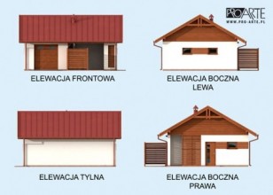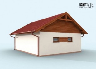 Budynek gospodarczy, wolnostojący. Projekt składa się z części architektonicznej, konstrukcyjnej i wewnętrznej instalacji elektrycznej. W projekcie załączone są podstawowe zestawienie stali, drewna i stolarki okienno-drzwiowej. Do projektu dołączamy bezpłatną zgodę na wprowadzenie zmian, oświadczenie projektantów o wykonaniu projektu zgodnie z obowiązującymi normami i przepisami oraz kserokopie uprawnień projektantów wraz z aktualnym wpisem do izby. W przypadku zamówienia projektu w technologii lekkiej, drewnianej konstrukcji szkieletowej, powierzchnia użytkowa budynku jest o około 7% większa.