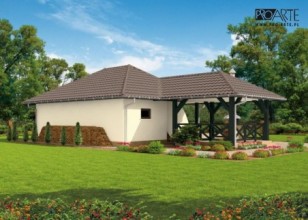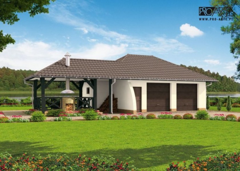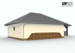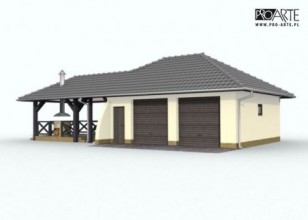 Budynek gospodarczy, wolnostojący. Projekt składa się z części architektonicznej, konstrukcyjnej i wewnętrznej instalacji elektrycznej. W projekcie załączone są podstawowe zestawienie stali, drewna i stolarki okienno-drzwiowej. Do projektu dołączamy bezpłatną zgodę na wprowadzenie zmian, oświadczenie projektantów o wykonaniu projektu zgodnie z obowiązującymi normami i przepisami oraz kserokopie uprawnień projektantów wraz z aktualnym wpisem do izby. W przypadku zamówienia projektu w technologii lekkiej, drewnianej konstrukcji szkieletowej, powierzchnia użytkowa budynku jest o około 7% większa.