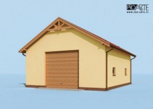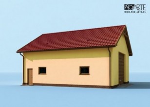 Budynek gospodarczy, wolnostojący. Projekt składa się z części architektonicznej, konstrukcyjnej i wewnętrznej instalacji elektrycznej. W projekcie załączone są podstawowe zestawienie stali, drewna i stolarki okienno-drzwiowej. Do projektu dołączamy bezpłatną zgodę na wprowadzenie zmian, oświadczenie projektantów o wykonaniu projektu zgodnie z obowiązującymi normami i przepisami oraz kserokopie uprawnień projektantów wraz z aktualnym wpisem do izby. W przypadku zamówienia projektu w technologii lekkiej, drewnianej konstrukcji szkieletowej, powierzchnia użytkowa budynku jest o około 7% większa.