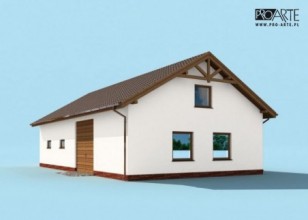 Budynek gospodarczy, wolnostojący. Projekt składa się z części architektonicznej, konstrukcyjnej i wewnętrznej instalacji elektrycznej. W projekcie załączone są podstawowe zestawienie stali, drewna i stolarki okienno-drzwiowej. Do projektu dołączamy bezpłatną zgodę na wprowadzenie zmian, oświadczenie projektantów o wykonaniu projektu zgodnie z obowiązującymi normami i przepisami oraz kserokopie uprawnień projektantów wraz z aktualnym wpisem do izby. W przypadku zamówienia projektu w technologii lekkiej, drewnianej konstrukcji szkieletowej, powierzchnia użytkowa budynku jest o około 7% większa.