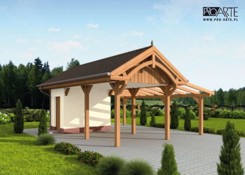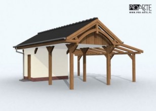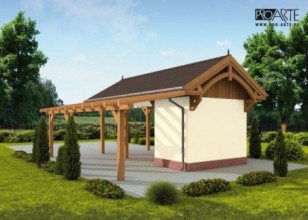 Budynek gospodarczy, wolnostojący. Projekt składa się z części architektonicznej, konstrukcyjnej i wewnętrznej instalacji elektrycznej. W projekcie załączone są podstawowe zestawienie stali, drewna i stolarki okienno-drzwiowej. Do projektu dołączamy bezpłatną zgodę na wprowadzenie zmian, oświadczenie projektantów o wykonaniu projektu zgodnie z obowiązującymi normami i przepisami oraz kserokopie uprawnień projektantów wraz z aktualnym wpisem do izby. W przypadku zamówienia projektu w technologii lekkiej, drewnianej konstrukcji szkieletowej, powierzchnia użytkowa budynku jest o około 7% większa.