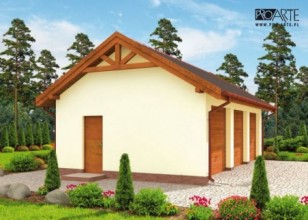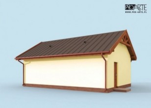 Budynek gospodarczy, wolnostojący. Projekt składa się z części architektonicznej, konstrukcyjnej i wewnętrznej instalacji elektrycznej. W projekcie załączone są podstawowe zestawienie stali, drewna i stolarki okienno-drzwiowej. Do projektu dołączamy bezpłatną zgodę na wprowadzenie zmian, oświadczenie projektantów o wykonaniu projektu zgodnie z obowiązującymi normami i przepisami oraz kserokopie uprawnień projektantów wraz z aktualnym wpisem do izby. W przypadku zamówienia projektu w technologii lekkiej, drewnianej konstrukcji szkieletowej, powierzchnia użytkowa budynku jest o około 7% większa.