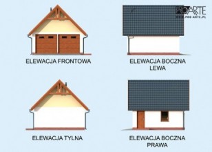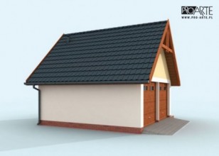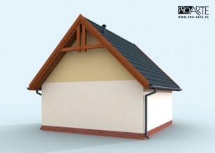 Budynek gospodarczy, wolnostojący. Projekt składa się z części architektonicznej, konstrukcyjnej i wewnętrznej instalacji elektrycznej. W projekcie załączone są podstawowe zestawienie stali, drewna i stolarki okienno-drzwiowej. Do projektu dołączamy bezpłatną zgodę na wprowadzenie zmian, oświadczenie projektantów o wykonaniu projektu zgodnie z obowiązującymi normami i przepisami oraz kserokopie uprawnień projektantów wraz z aktualnym wpisem do izby. W przypadku zamówienia projektu w technologii lekkiej, drewnianej konstrukcji szkieletowej, powierzchnia użytkowa budynku jest o około 7% większa.