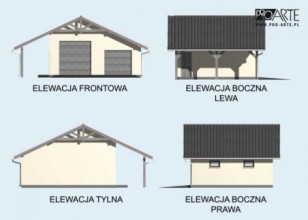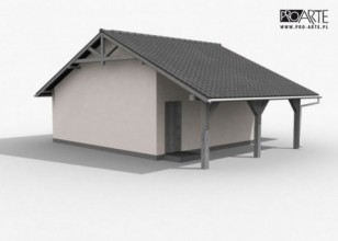 Budynek gospodarczy, wolnostojący. Projekt składa się z części architektonicznej, konstrukcyjnej i wewnętrznej instalacji elektrycznej. W projekcie załączone są podstawowe zestawienie stali, drewna i stolarki okienno-drzwiowej. Do projektu dołączamy bezpłatną zgodę na wprowadzenie zmian, oświadczenie projektantów o wykonaniu projektu zgodnie z obowiązującymi normami i przepisami oraz kserokopie uprawnień projektantów wraz z aktualnym wpisem do izby. W przypadku zamówienia projektu w technologii lekkiej, drewnianej konstrukcji szkieletowej, powierzchnia użytkowa budynku jest o około 7% większa.