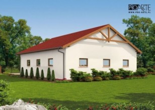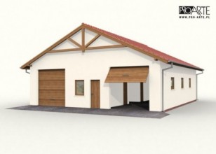 Budynek gospodarczy, wolnostojący. Projekt budynku składa się z 6 egzemplarzy, a w tym 3 tomów części architektoniczno-budowlanej oraz 3 technicznej. W projekcie załączone są podstawowe zestawienie stali, drewna i stolarki okienno-drzwiowej. Do projektu dołączamy bezpłatną zgodę na wprowadzenie zmian, oświadczenie projektantów o wykonaniu projektu zgodnie z obowiązującymi normami i przepisami oraz kserokopie uprawnień projektantów wraz z aktualnym wpisem do izby. W przypadku zamówienia projektu w technologii lekkiej, drewnianej konstrukcji szkieletowej, powierzchnia użytkowa budynku jest o około 7% większa.