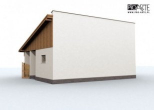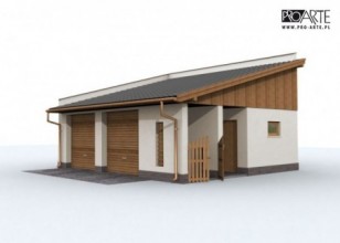 Budynek gospodarczy, wolnostojący. Projekt składa się z części architektonicznej, konstrukcyjnej i wewnętrznej instalacji elektrycznej. W projekcie załączone są podstawowe zestawienie stali, drewna i stolarki okienno-drzwiowej. Do projektu dołączamy bezpłatną zgodę na wprowadzenie zmian, oświadczenie projektantów o wykonaniu projektu zgodnie z obowiązującymi normami i przepisami oraz kserokopie uprawnień projektantów wraz z aktualnym wpisem do izby. W przypadku zamówienia projektu w technologii lekkiej, drewnianej konstrukcji szkieletowej, powierzchnia użytkowa budynku jest o około 7% większa.