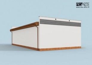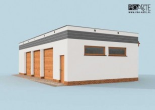 Budynek gospodarczy, wolnostojący. Projekt składa się z części architektonicznej, konstrukcyjnej i wewnętrznej instalacji elektrycznej. W projekcie załączone są podstawowe zestawienie stali, drewna i stolarki okienno-drzwiowej. Do projektu dołączamy bezpłatną zgodę na wprowadzenie zmian, oświadczenie projektantów o wykonaniu projektu zgodnie z obowiązującymi normami i przepisami oraz kserokopie uprawnień projektantów wraz z aktualnym wpisem do izby. W przypadku zamówienia projektu w technologii lekkiej, drewnianej konstrukcji szkieletowej, powierzchnia użytkowa budynku jest o około 7% większa.