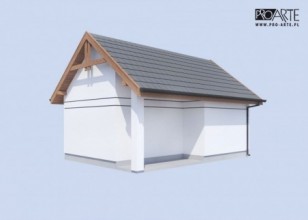 Budynek gospodarczy, wolnostojący. Projekt składa się z części architektonicznej, konstrukcyjnej i wewnętrznej instalacji elektrycznej. W projekcie załączone są podstawowe zestawienie stali, drewna i stolarki okienno-drzwiowej. Do projektu dołączamy bezpłatną zgodę na wprowadzenie zmian, oświadczenie projektantów o wykonaniu projektu zgodnie z obowiązującymi normami i przepisami oraz kserokopie uprawnień projektantów wraz z aktualnym wpisem do izby. W przypadku zamówienia projektu w technologii lekkiej, drewnianej konstrukcji szkieletowej, powierzchnia użytkowa budynku jest o około 7% większa.