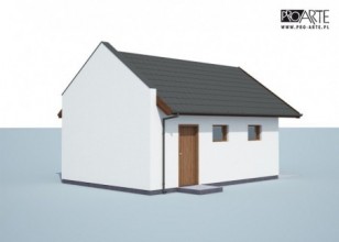 Budynek gospodarczy, wolnostojący. Projekt składa się z części architektonicznej, konstrukcyjnej i wewnętrznej instalacji elektrycznej. W projekcie załączone są podstawowe zestawienie stali, drewna i stolarki okienno-drzwiowej. Do projektu dołączamy bezpłatną zgodę na wprowadzenie zmian, oświadczenie projektantów o wykonaniu projektu zgodnie z obowiązującymi normami i przepisami oraz kserokopie uprawnień projektantów wraz z aktualnym wpisem do izby. W przypadku zamówienia projektu w technologii lekkiej, drewnianej konstrukcji szkieletowej, powierzchnia użytkowa budynku jest o około 7% większa.