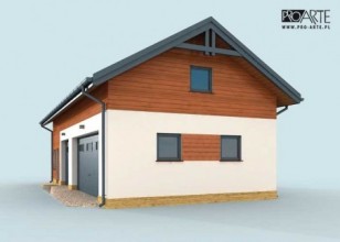 Budynek gospodarczy, wolnostojący. Projekt składa się z części architektonicznej, konstrukcyjnej i wewnętrznej instalacji elektrycznej. W projekcie załączone są podstawowe zestawienie stali, drewna i stolarki okienno-drzwiowej. Do projektu dołączamy bezpłatną zgodę na wprowadzenie zmian, oświadczenie projektantów o wykonaniu projektu zgodnie z obowiązującymi normami i przepisami oraz kserokopie uprawnień projektantów wraz z aktualnym wpisem do izby. W przypadku zamówienia projektu w technologii lekkiej, drewnianej konstrukcji szkieletowej, powierzchnia użytkowa budynku jest o około 7% większa.