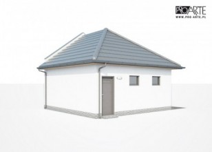 Budynek gospodarczy, wolnostojący. Projekt składa się z części architektonicznej, konstrukcyjnej i wewnętrznej instalacji elektrycznej. W projekcie załączone są podstawowe zestawienie stali, drewna i stolarki okienno-drzwiowej. Do projektu dołączamy bezpłatną zgodę na wprowadzenie zmian, oświadczenie projektantów o wykonaniu projektu zgodnie z obowiązującymi normami i przepisami oraz kserokopie uprawnień projektantów wraz z aktualnym wpisem do izby. W przypadku zamówienia projektu w technologii lekkiej, drewnianej konstrukcji szkieletowej, powierzchnia użytkowa budynku jest o około 7% większa.