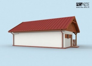 Budynek gospodarczy, wolnostojący. Projekt składa się z części architektonicznej, konstrukcyjnej i wewnętrznej instalacji elektrycznej. W projekcie załączone są podstawowe zestawienie stali, drewna i stolarki okienno-drzwiowej. Do projektu dołączamy bezpłatną zgodę na wprowadzenie zmian, oświadczenie projektantów o wykonaniu projektu zgodnie z obowiązującymi normami i przepisami oraz kserokopie uprawnień projektantów wraz z aktualnym wpisem do izby. W przypadku zamówienia projektu w technologii lekkiej, drewnianej konstrukcji szkieletowej, powierzchnia użytkowa budynku jest o około 7% większa.