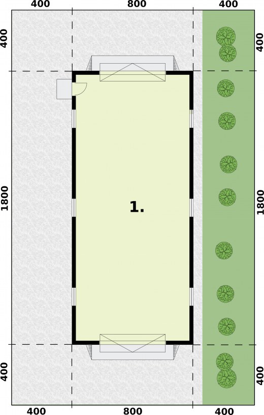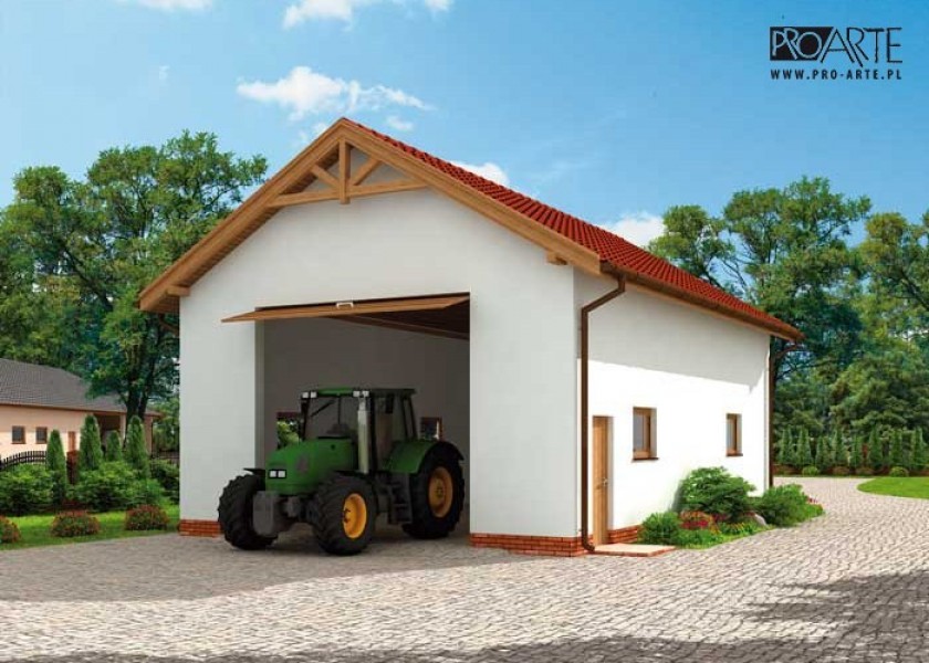 Projekt budynku gospodarczego G227B.G227B dwie bramy garażowe o wymiarach 4,4x4,1m. Uwaga! Wizualizacja poglądowa, może się różnić względem wizualizacji.
