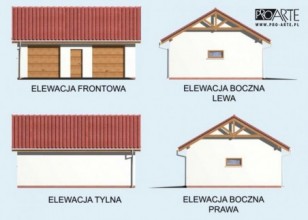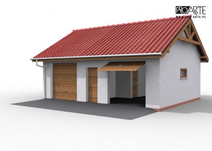 Budynek gospodarczo-garażowy, wolnostojący. Projekt składa się z części architektonicznej, konstrukcyjnej i wewnętrznej instalacji elektrycznej. W projekcie załączone są podstawowe zestawienie stali, drewna i stolarki okienno-drzwiowej. Do projektu dołączamy bezpłatną zgodę na wprowadzenie zmian, oświadczenie projektantów o wykonaniu projektu zgodnie z obowiązującymi normami i przepisami oraz kserokopie uprawnień projektantów wraz z aktualnym wpisem do izby. W przypadku zamówienia projektu w technologii lekkiej, drewnianej konstrukcji szkieletowej, powierzchnia użytkowa budynku jest o około 7% większa.
