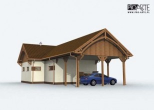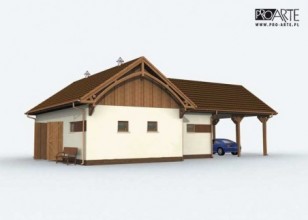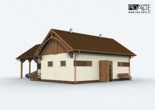 Budynek gospodarczy w technologii lekkiego szkieletu drewnianegoz trzema pomieszczeniami, łazienką i wiatą.Może również pełnić funkcję garażową lub magazynową. Zobacz stajnię S10.Projekt składa się z części architektoniczno-budowlanej oraz części technicznej, wewnętrznej instalacji wod-kan. i wewnętrznej instalacji elektrycznej. W projekcie załączone są podstawowe zestawienie stali, drewna i stolarki okienno-drzwiowej. Do projektu dołączamy bezpłatną zgodę na wprowadzenie zmian, oświadczenie projektantów o wykonaniu projektu zgodnie z obowiązującymi normami i przepisami oraz kserokopie uprawnień projektantów wraz z aktualnym wpisem do izby.