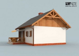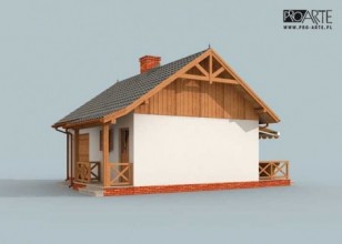 To wybór dla zmotoryzowanych letników. Domek, w którego bryle mieści się garaż to znakomite rozwiązanie dla chcących pełnej niezależności i bezpieczeństwa w trakcie wypoczynku, czy urlopu. Arizona imponuje zewnętrznym i wewnętrznym wyglądem. Widoczne na wizualizacji elementy pokrywające dwuspadowy dach dachówki, okalający dom cokolik, okiennice oraz odeskowanie przykuwają uwagę i mają znaczenie dla wielu Inwestorów. Dzięki nim wiemy, jak możemy upiększyć Arizonę. Weranda oraz wejście od południa