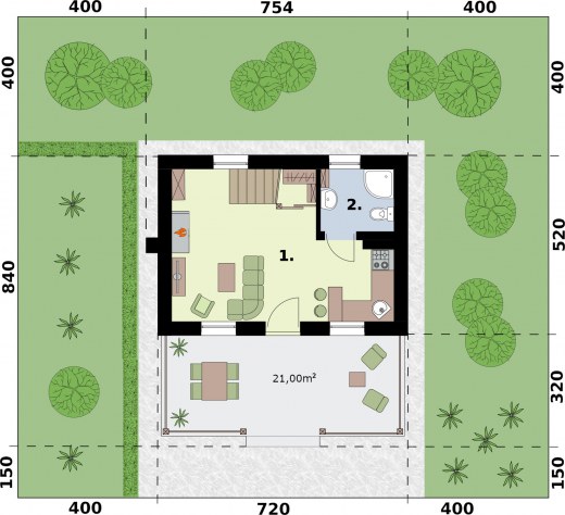 Niewielki dom letniskowy z charakterem, z możliwością dowolnej adaptacji poddasza użytkowego. W domu znajdziemy pokój z aneksem kuchennym i salonem oraz łazienkę. Poddasze użytkowe zajmuje 12,35 m2. Ważnym miejscem, skupiającym życie towarzyskie w Bari jest weranda wykonana z drewna, na której będzie można wypoczywać w upalne dni. Mimo niewielkich rozmiarów znajdziesz w nim wszystko, co tylko do spokojnego życia jest Ci potrzebne.