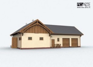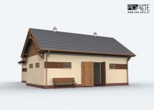 Budynek z czterema pomieszczeniami gospodarczymi i łazienką.Może również pełnić funkcję garażową lub magazynową. Zobacz stajnie S13.Projekt składa się z części architektonicznej, konstrukcyjnej, wewnętrznej instalacji wod-kan. i wewnętrznej instalacji elektrycznej. W projekcie załączone są podstawowe zestawienie stali, drewna i stolarki okienno-drzwiowej. Do projektu dołączamy bezpłatną zgodę na wprowadzenie zmian, oświadczenie projektantów o wykonaniu projektu zgodnie z obowiązującymi normami i przepisami oraz kserokopie uprawnień projektantów wraz z aktualnym wpisem do izby. W przypadku zamówienia projektu w technologii lekkiej, drewnianej konstrukcji szkieletowej, powierzchnia użytkowa budynku jest o około 7% większa.