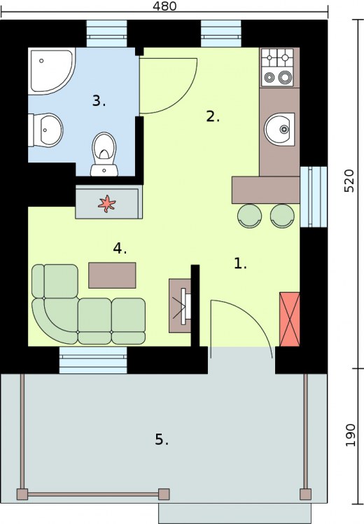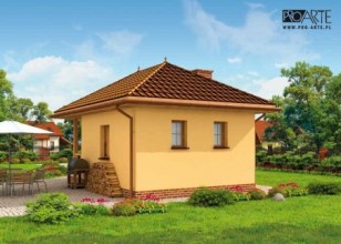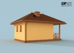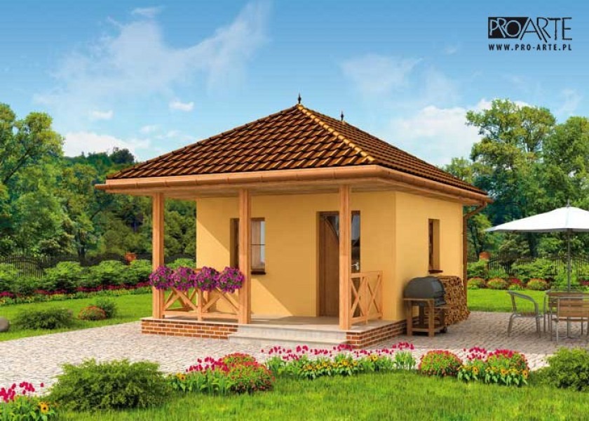 Boston - mały domek letniskowyZdecydują się na niego wszyscy, którzy niewielkim kosztem chcą postawić gustowny domek letniskowy. Dostępność projektu w wersji z obiciem drewnianym zwiększa jeszcze bardziej jego atrakcyjność. Drewniana weranda oraz ciepły kolor ścian świetnie komponują się z otaczającym dom klinkierowym cokolikiem i odpowiadającą im dachówką, pokrywającą kopertowy dach. Uwagę zwracają wieńczące go spiczaste wykończenia. Przyjaźnie i z rozwagą zaprojektowane wnętrze, na które składają się: wiatrołap, łączony z jadalnią, pokój dzienny wyposażony w miejsce na kominek. Dalej znajduje się półotwarta kuchnia i osobna łazienka, która dopełnia całości. Trudno uwierzyć, że tak wiele mieści się na jedynych 34 m2.Boston to kompletny budynek, w którym znajdziemy wszystko, co do komfortowego wypoczynku konieczne. Dostępność projektu w wersji standardowej i w obiciu drewnianym ścian jeszcze bardziej zachęca do wyboru właśnie tego budynku.Projekt składa się z części architektonicznej, konstrukcyjnej, wewnętrznych instalacji wod.-kan i elektrycznych. W projekcie załączone są podstawowe zestawienie stali, drewna i stolarki okienno-drzwiowej. Do projektu dołączamy bezpłatną zgodę na wprowadzenie zmian, oświadczenie projektantów o wykonaniu projektu zgodnie z obowiązującymi normami i przepisami oraz kserokopie uprawnień projektantów wraz z aktualnym wpisem do izby. W przypadku zamówienia projektu w technologii lekkiej, drewnianej konstrukcji szkieletowej, powierzchnia użytkowa budynku jest o około 7% większa.