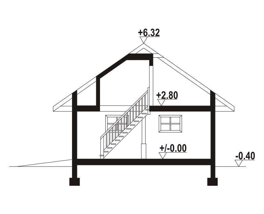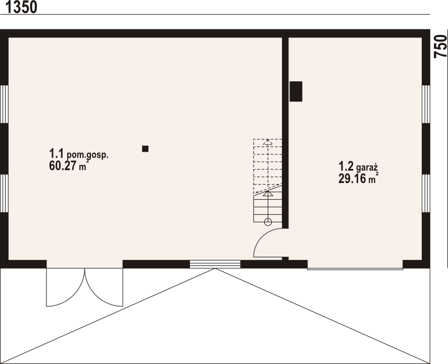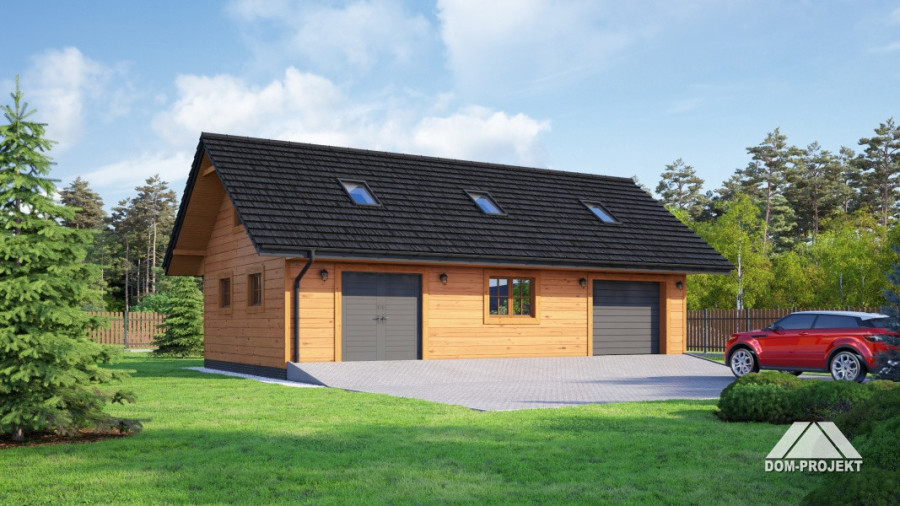 Budynek gospodarczy. Na parterze garaż i pomieszczenie gospodarcze. Wyjście na poddasze schodami. Poddasze nieużytkowe.