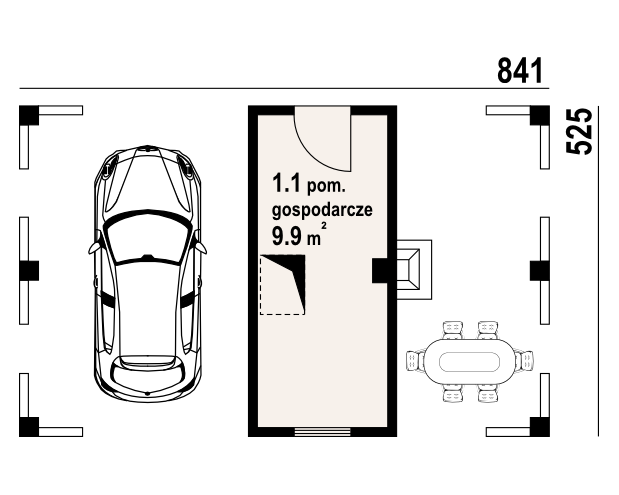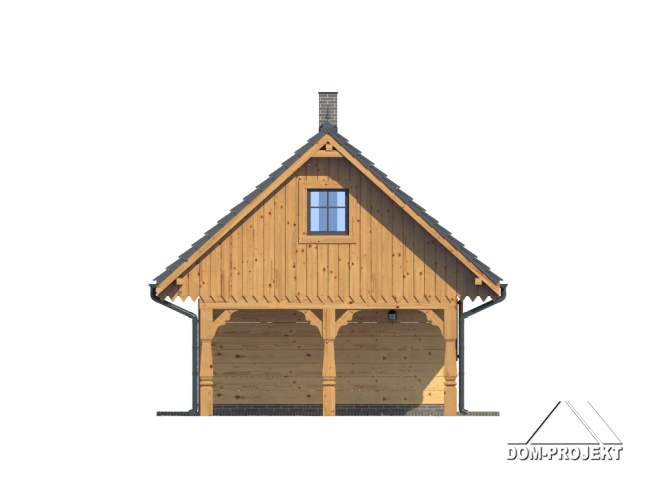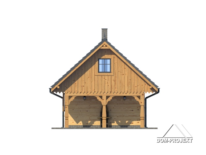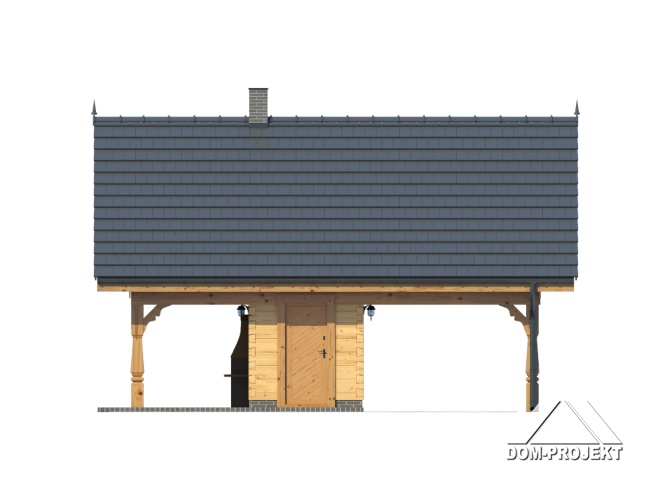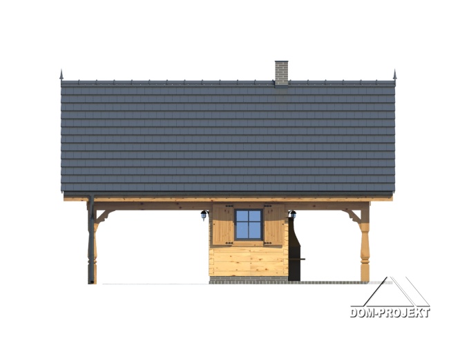 Budynek gospodarczy z wiatą na samochód i grillem zewnętrznym.
