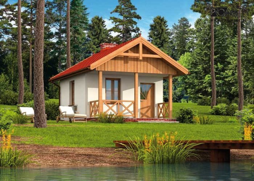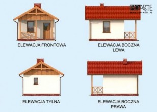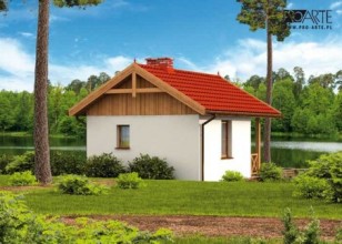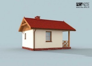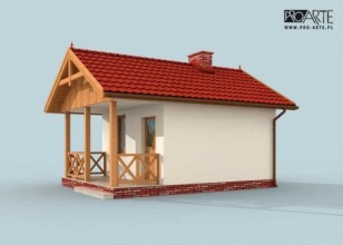 Delhi to wybór dla wszystkich, którzy niewielkim kosztem chcą postawić domek letniskowy, miejsce wypoczynku, ostoję spokoju. Drewniana weranda świetnie komponuje się z otaczającym dom klinkierowym cokolikiem, który odpowiada czerwonej dachówce pokrywającej dach. Przyjaźnie zaprojektowane wnętrze, na które składają się: wiatrołap, pokój dzienny z aneksem kuchennym oraz łazienka zachęcają do wybrania właśnie tego projektu. Projekt składa się z części architektonicznej, konstrukcyjnej, wewnętrznych instalacji wod.-kan i elektrycznych. W projekcie załączone są podstawowe zestawienie stali, drewna i stolarki okienno-d